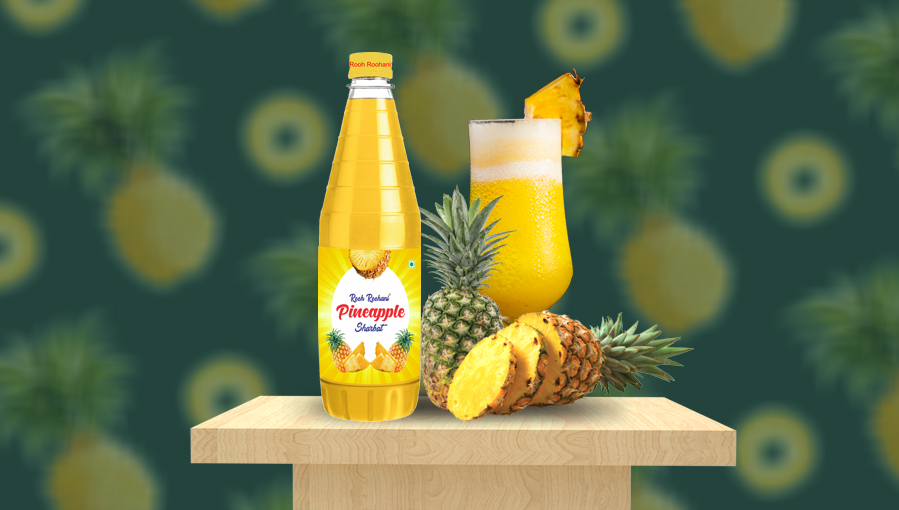 Mix one part of Rooh Roohani Pineapple Syrup with four parts of iced water or with club soda. Stir well and feel the goodness of Khaas Ananas Sharbat.